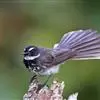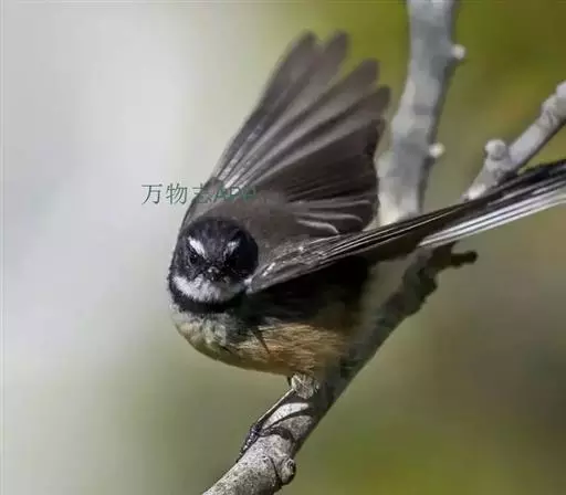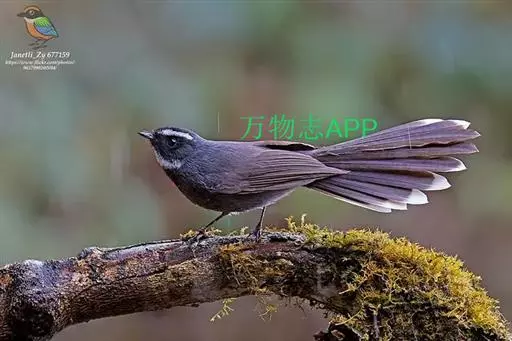 白眉扇尾鹟:体长17厘米,是一种中等体型的灰色扇尾鹟。色彩独特。宽宽的眉纹及前额白色,尾有白色宽边…