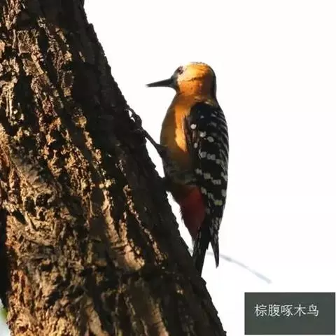 棕腹啄木鸟为啄木鸟科,啄木鸟属是中等体型的鸟类,体长约20厘米。头顶部具红色斑带。脚强健,有趾4个,…