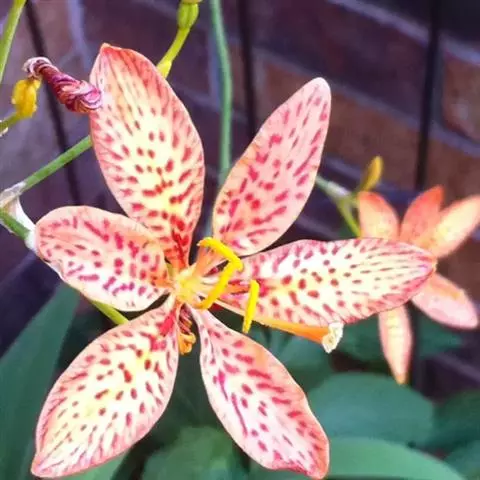 虎皮花 Ker-Gawl.)球根花卉,高40~60厘米。球茎圆锥形。 叶片剑形。花梗自叶丛中抽出,…