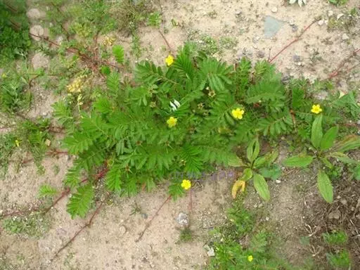 鹅绒委陵菜,多年生匍匐草本,叶正面深绿,背后如羽毛,密生白细绵毛,宛若鹅绒。块根纺锤形或球形,棕褐色。茎细弱,紫红色。节上生不定根。不整齐羽状复叶。花单生叶腋,被柔毛;花瓣5,黄色,倒卵形或近圆形,全缘。瘦果褐色,卵圆形。花果期5-9月。属于喜光耐阴性植物,气候适应性广泛。