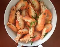 2、锅里油烧热,下鲜虾变红后,盛出。