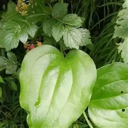 菝葜,菝葜科菝葜属 多年生藤本落叶攀附植物,茎干较粗,嫩白色,呈圆柱形,表面带有小刺;叶子较大,…