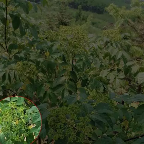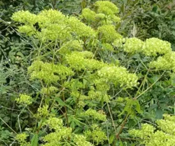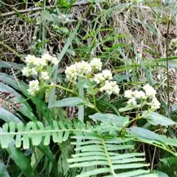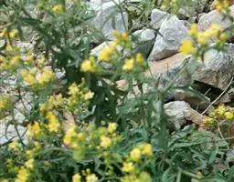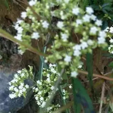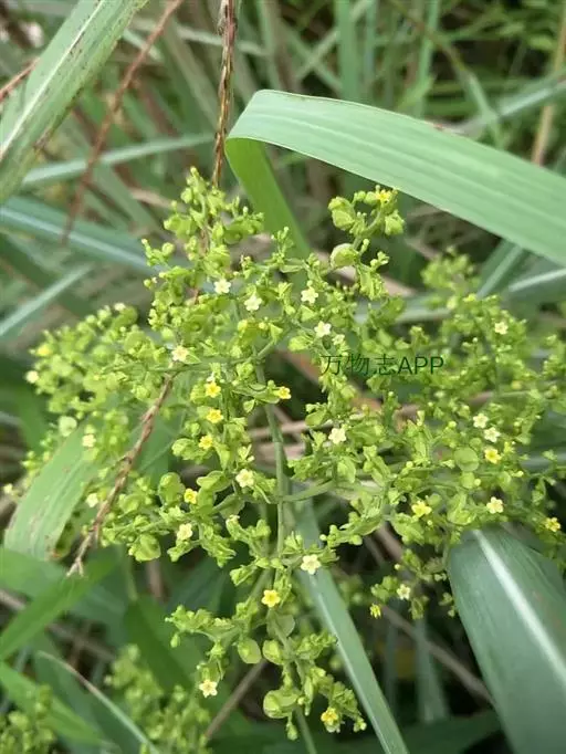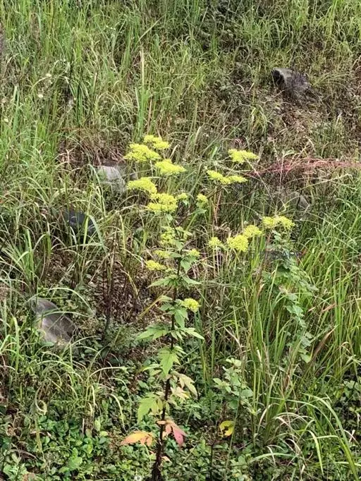 糙叶败酱( Patrinia rupestris Juss.subsp.scabra H.J.Wang),败酱科植物,多年生草本,茎丛生,茎上部多分枝,叶对生,裂片倒披针形、狭披针形或长圆形,聚伞花序顶生,呈伞房状排列,花小,黄色,花冠合瓣,果实翅状,卵形或近圆形,种子位于中央。