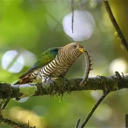 翠金鹃体长约17厘米,雄鸟上体辉绿色,头至背缀有很多棕栗色,…