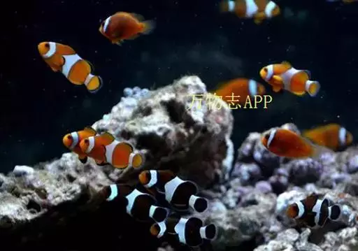 眼斑双锯鱼与其他鱼类共生,此鱼英文Clownfish,右图第12行