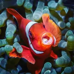 眼斑双锯鱼(Amphiprion ocellaris)又称公子小丑,公仔小丑,为鲈形目、雀鲷科、双锯鱼属一种热带海水鱼类。眼斑双锯鱼分布于西太平洋印度尼西亚、泰国、菲律宾、新加坡及澳大利亚西北部,活动于珊瑚礁区,觅食各类有机物碎屑及小型猎物,与海葵有着明显的伴生关系,平日躲藏于海葵中。为一种著名观赏鱼。