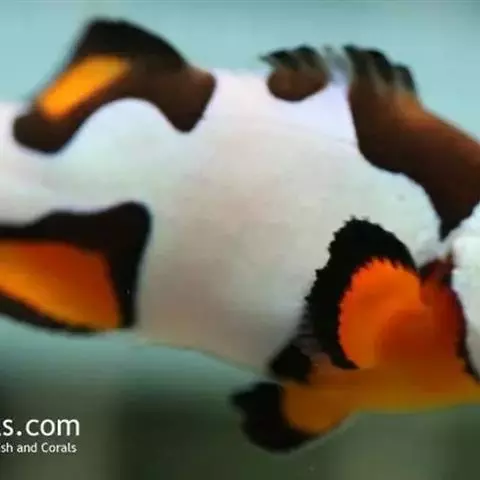 眼斑双锯鱼(学名:Amphiprion ocellaris),背鳍硬棘被橘黄色斑块分割为5-6枚,第4枚最长,约为头长的2.1-2.9倍。胸鳍、臀鳍、背鳍、尾鳍被橘黄色斑块分割部分都具黑缘,黑缘之外还有一透明外缘。体侧3块白斑明显可见,形状不规则,约在鳃盖外缘,身体中段及尾柄部各有一块。