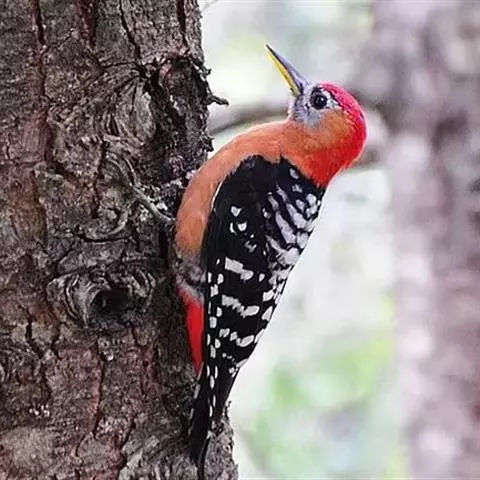 星头啄木鸟是䴕形目啄木鸟科啄木鸟属鸟类,又称北啄木鸟、红星头喯打木、红星啄木等。头顶灰褐色,虹膜褐色,…