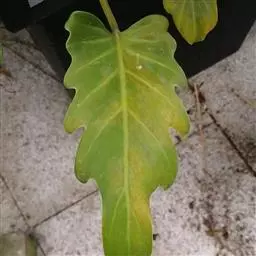 裂叶喜林芋在栽培中病害发生较少,主要有细菌性软腐病(病原菌:菊迪基氏菌Dickeya chrysanthemi)。2014年在广东洋大学校区种植的裂叶喜林芋发生一种严重的叶斑病,引起植株叶片发黄、枯萎,严重影响观赏价值。确定引起裂叶喜林芋叶斑病的病原菌为芒果新壳梭孢菌Neofusicoccum mangiferae,这是首次在裂叶喜林芋叶片上发现由该菌引起的病害。