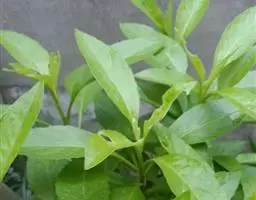 4.盆土缺镁,由下至上叶片边缘和中部失绿变白;