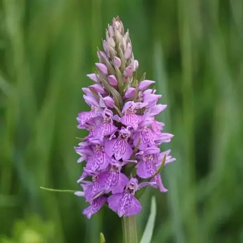 花葶从叶丛中央抽出,长达60厘米,密被短毛,具3-4枚筒状鞘;总状花序长7-11厘米,具10余朵花;花苞片宽卵形,长约1.5厘米,先端急尖,背面被毛;花梗和子房黄绿色,长约3厘米;花张开;14片和花瓣多少反折,黄绿色;中萼片椭圆形,长9毫米,宽4.5毫米,先端钝并具短芒,具5条脉,背面被短毛;侧萼片宽卵状椭圆形,长10毫米,宽5.5毫米,先端钝并具短芒,具5条脉,背面被短毛。