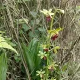 钩距虾脊兰:根状茎不明显。假鳞茎短,近卵球形,粗约2厘米,具3-4枚鞘和3-4枚叶。叶在花期尚未完…
