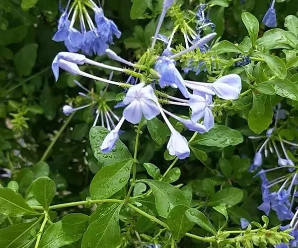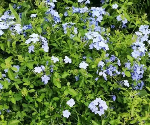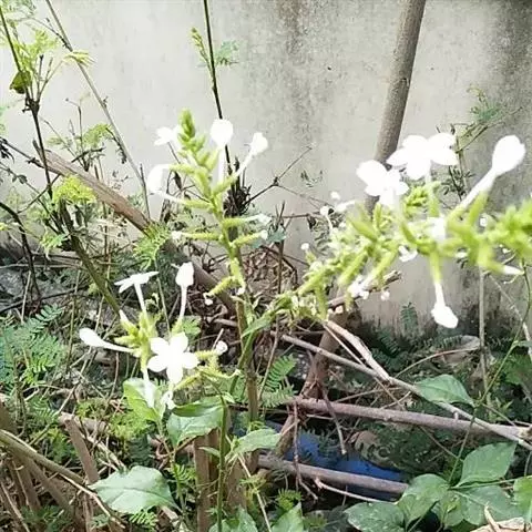 雪花丹(Plumbago auriculataLam. f. alba(Pasq.) Peng):该变型的花冠呈白色。 蓝花丹