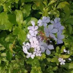 蓝花丹(学名:Plumbago auriculata Lam.)是白花丹科白花丹属植物,常绿柔弱半灌木,上端蔓状或极开散,高约1米或更长,除花序外无毛,被有细小的钙质颗粒。叶薄,通常菱状卵形至狭长卵形。穗状花序约含18-30枚花;总花梗短,通常长2-12毫米。果实未见。花期6-9月和12-4月。