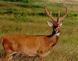 坡鹿是偶蹄目鹿科鹿属动物,体长1.6米左右,体重60~100千克。体形狭长,颈部和四肢也较为细长,…