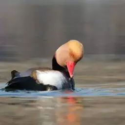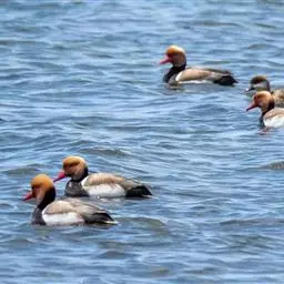 赤嘴潜鸭俗称大红头,是大型鸭类,个体比绿头鸭小,体长45-55厘米,体重1千克左右。雄鸟头浓栗色,…