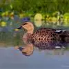 斑嘴鸭是雁形目鸭科鸭属鸟类。李文华,旭日干,中国自然资源通典 辽宁卷,内蒙古教育出版社,2015,第361页雄鸟体羽大部棕褐色;嘴蓝黑色,先端黄色,嘴基至耳区贯眼线黑褐色;虹膜黑褐色,外圈橙黄色;眉纹黄白色,头顶、额、枕部暗棕褐色;上背灰褐色,下背褐色;翼镜蓝绿色带紫色金属光泽;胸部棕白色杂褐色斑,腹褐色;腰、尾上覆羽、尾羽黑褐色,尾下覆羽黑色;跗蹠和趾棕黄色,爪黑色。雌鸟嘴端黄斑不明显,下体自胸以下淡白色,杂暗色斑。因嘴端有黄斑而得名。斑嘴鸭分布于中国各省区,栖息于河流、湖泊、水塘及沼泽等湿地中。善游泳、行走,游泳时尾露出水面,除繁殖期外,常成群活动,也和其他鸭类混群。主食植物的种子、嫩芽和幼苗等植物性食物,也食昆虫、软体动物等动物性食物。繁殖期5—7月,以干草和绒羽在岸边草丛中做巢,1年繁殖1窝,每窝产卵8—14枚,孵化期24天。斑嘴鸭被列入中国国家林业局2000年8月1日发布的《国