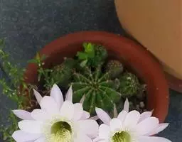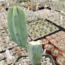 因为三棱箭的砧木较长,故直接将接穗拿下、留下长的砧木。当时是12月中旬,砧木表面吹干后的十来天就发出新根。以加鸽粪沤制过的煤渣份混合後上盆栽植的。上盆后置于朝南的阳台上,第二年,随著植株顶上绒毛越长越密,不断开出纯白色的小花。在每年换盆时见到用中等颗粒的培养土栽植的落地接穗根系较密,而且穿过盆底的排水孔。