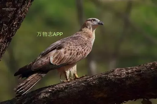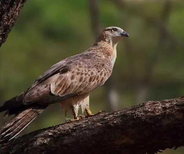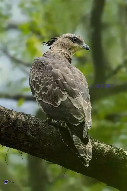 蜂鹰属共有3种9 个亚种,属中型猛禽。其中代表物种凤头蜂鹰也称东方蜂鹰,体长为50~62厘米,体重800~1200克。头顶暗褐色至黑褐色,头侧具有短而硬的鳞片状羽毛,而且较为厚密,是其独有的特征之一。头的后枕部通常具有短的黑色羽冠,显得与众不同。虹膜为金黄色或橙红色,非常美丽。嘴为黑色,脚和趾为黄色,爪黑色。上体通常为黑褐色,头侧为灰色,喉部白色,具有黑色的中央斑纹,其余下体为棕褐色或栗褐色,具有淡红褐色和白色相间排列的横带和粗著的黑色中央纹。初级飞羽为暗灰色,尖端为黑色,翼下飞羽白色或灰色,具黑色横带,尾羽为灰色或暗褐色,具有3~5条暗色宽带斑及灰白色的波状横斑。凤头蜂鹰的体色变化较大,但通过头侧短而硬的鳞片状羽和尾羽的数条暗色宽带斑,可以同其他猛禽相区别。