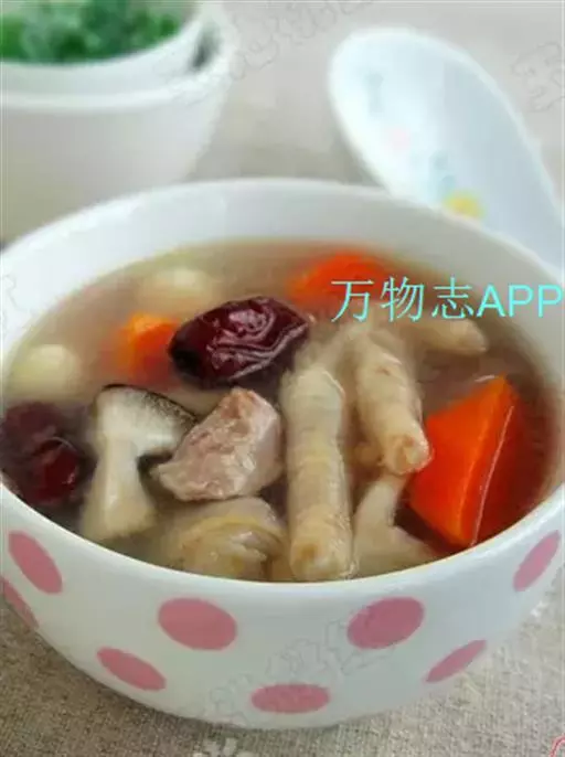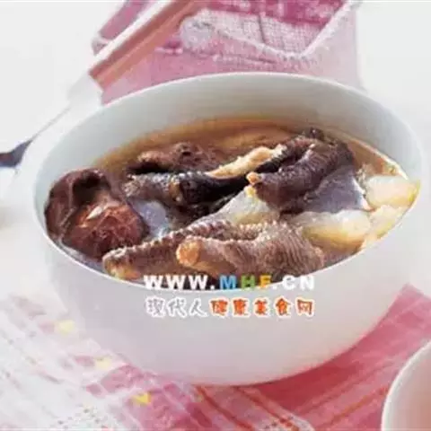 鸡爪8个,香菇10克,冬笋15克,火腿15克,熟鸡油10克,精盐2克,味精1克,绍酒10克,葱姜汁5克,鸡汤1000克。