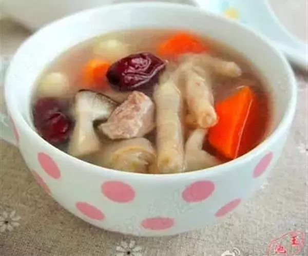2.鸡爪、香菇、冬笋片、火腿片放进大汤碗内,倒入鸡汤、葱姜汁、精盐、味精、绍酒,上笼用旺火蒸至鸡爪软糯酥烂取出,淋入鸡油即成。