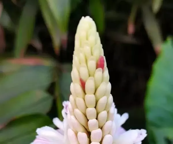 密苞山姜是姜科,山姜属多年生草本植物,株高可达1.5米。叶片椭圆状披针形,顶端渐尖,并具细尾尖,基…
