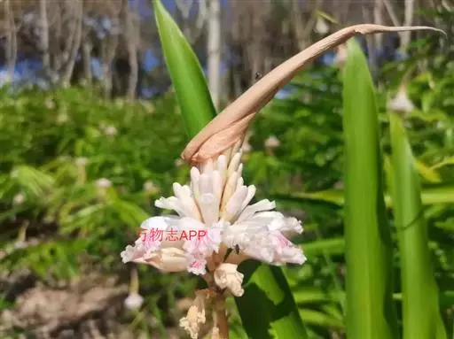 海南山姜是姜科,山姜属多年生草本植物,叶片带形,顶端渐尖并有一旋卷的尾状尖头,基部渐狭,…