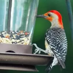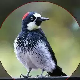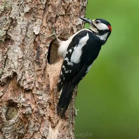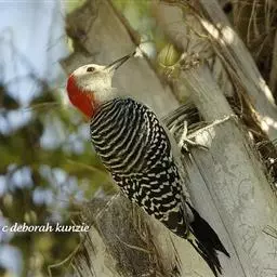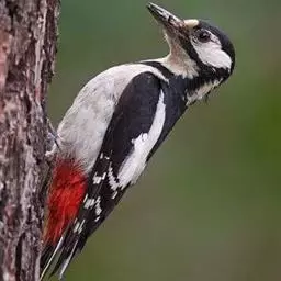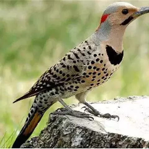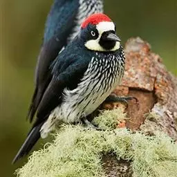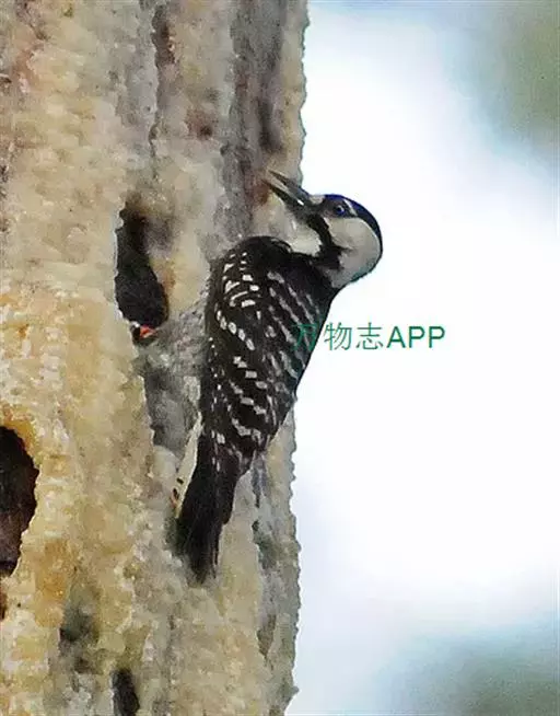橡树啄木鸟:体长20-23厘米。前额灰黄色,头顶、后颈红色。喉下部、腰和腹部白色,…