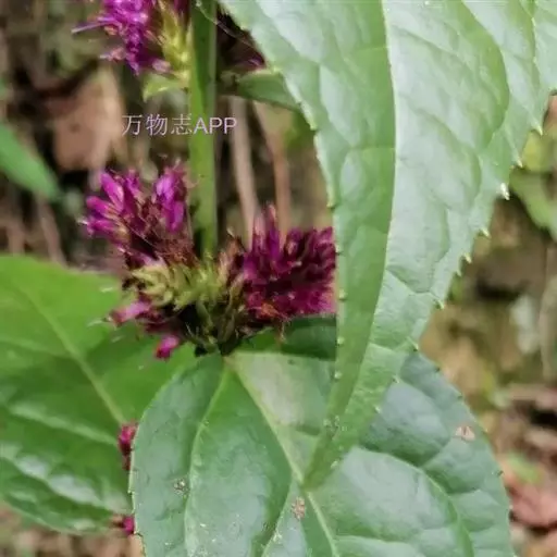 柔毛,边缘有尖锯齿。夏季开花;德状花穗,无柄,近球形,长约1.2厘米;花紫红色。但茎无毛或疏生短毛,花序圆筒状,长1.5~3.5厘米。民间常混用。