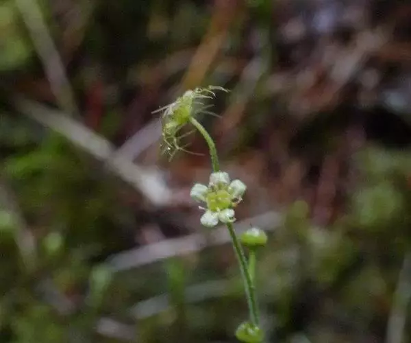总状花序长2-11厘米,疏生数花;花梗长3-5毫米,被短腺毛;萼片近卵形,长1.6-2毫米,先端稍渐尖,单脉;花瓣长约4毫米,羽状9深裂,裂片通常线形;雄蕊10,较萼片短;2心皮大部合生,子房半下位,阔卵球形,花柱2,柱头2裂。