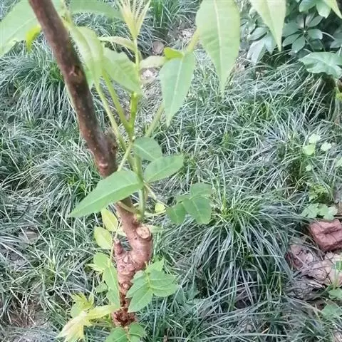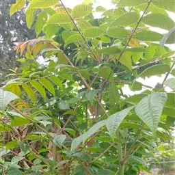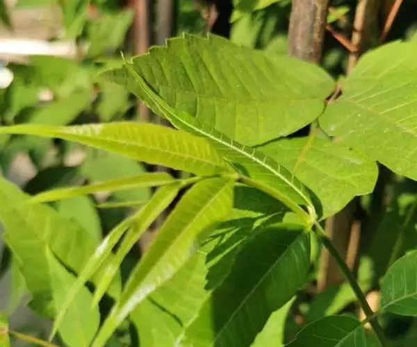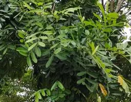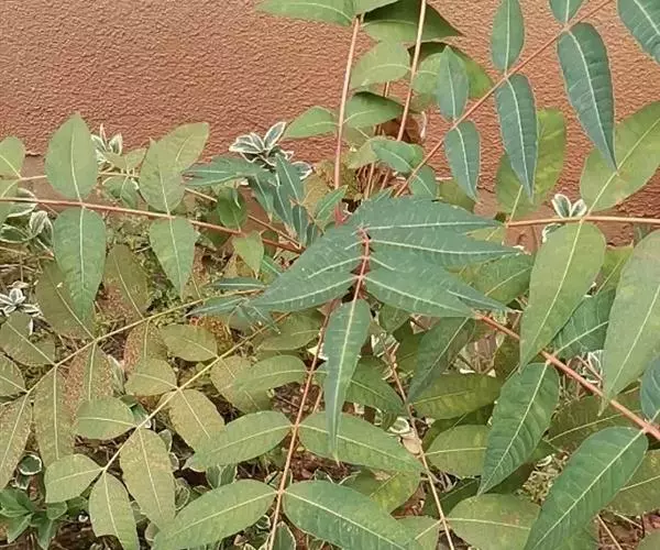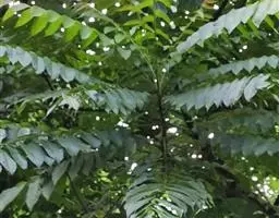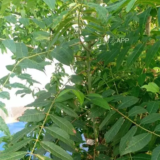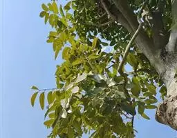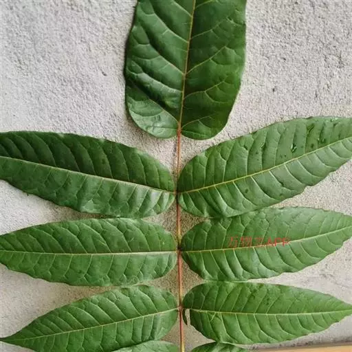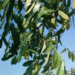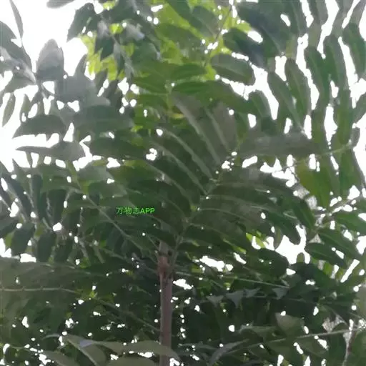 乔木;树皮粗糙,深褐色,片状脱落。叶具长柄, 偶数羽状复叶,长30-50厘米或更长;小叶16-20,对生或互生,纸质,卵状披针形或卵状长椭圆形,长9-15厘米,宽2.5-4厘米,先端尾尖,基部一侧圆形,另一侧楔形,不对称,边全缘或有疏离的小锯齿,两面均无毛,无斑点,背面常呈粉绿色,侧脉每边18-24条,平展,与中脉几成直角开出,背面略凸起;小叶柄长5-10毫米。