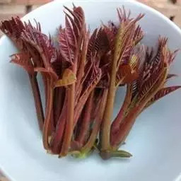 摘香椿 香椿品种很多,根据香椿初出芽苞和子叶的颜色不同,基本上可分为紫香椿和绿香椿两大类。
