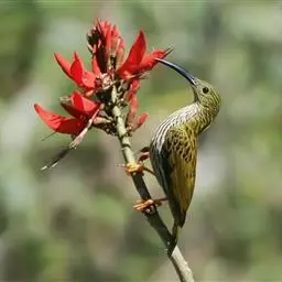 纹背捕蛛鸟:为太阳鸟科捕蛛鸟属的鸟类。是太阳鸟科中体型较大的一种,体重25-45克,…