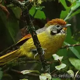 生态 栖于海拔1,500—2,600米间的阔叶林、混交林、沟谷阔叶林以至山间竹林或耕地附近的树丛间。在喜马拉雅山脉南坡1,500—2,700米海拔的热带季雨林内较为常见,但数量不多。多十数只呈散在群体活动于盛开花朵的树上觅食。在云南南部4—5月见有成对活动。1962年5月7日在滇西小黑山采得成对活动的雄鸟,睾丸膨大,约5×3毫米。 1964年8月18日在云南景东磨刀河采得正在换羽的雄鸟,右侧第六枚飞羽正脱换,尚未长全;左侧第1—5枚尾羽及右侧第1—4枚尾羽已脱换,其余尾羽刚长出新羽芽。11月13日采的雄鸟,右侧中央尾羽脱落,左侧的外侧尾羽新羽尚未长全 。