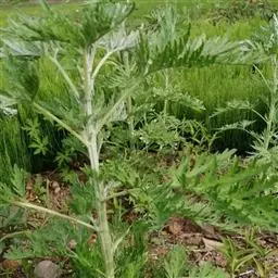 大籽蒿 大籽蒿种子小,千粒重0.15克,在25-30℃温度下,24小时即可发芽,在一定温度范围内,发芽率随温度升高而增高,发芽速度加快。0-5℃,发芽率为10%,需24天,10-15℃,达83%,需12天,20-25℃,达84%,只需8天。当温度上升至25-30℃时,发芽率则降至49%,35℃,发芽率只27%。在海拔1650米的中国天山北坡种植,4月18日播种,5月14日出苗,6月25日进入分枝期,从播种到出苗需26天,出苗到分枝需42天。分枝期一般有9片真叶,平均每出1片真叶需4-6天。当年一直处于叶簇阶段。一边长出新叶,一边基部老叶片枯死。