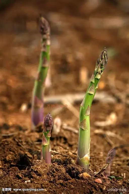 3、芦笋根系特征:芦笋茎分地下茎和地上茎,各有不同的功能。芦笋为须根系,由肉质贮藏根和须状吸收根组成。肉质贮藏根由地下根状茎节发生,多数分布在距地表30厘米的土层内,寿命长,只要不损伤生长点,每年可以不断向前延伸,一般可达2米左右,起固定植株和贮藏茎叶同化养分的作用。