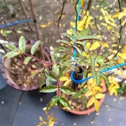 高压后叶片呈淡绿色,在塑料袋里长出白色的嫩根,并逐渐布满四周,说明高压成功,于9-10月在塑料袋下部将枝条剪下,轻轻拆去塑料薄膜,注意不要弄碎泥团,栽在花盆里,浇透水,放在遮荫处缓苗,经过10-15天,逐渐增加光照,不久就能长出新叶。