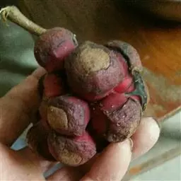 聚合果长7-15厘米,蓇葖长圆体形、倒卵圆形、卵圆形、顶端圆钝或具短突尖头。种子红色,斜卵圆形,长约1厘米,宽约5毫米,稍扁。