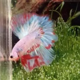 杂合子蓝尾(Heterozygote Blue Tail):俗称“Bb蓝”,子代会分离出杂合子蓝尾(约50%)、蓝化体蓝尾(约25%)、红尾(约25%)三种性状,一般来看杂合子蓝颜色较浅,但要想确知,必须通过测交来确定。致色原因是蓝反射细胞+黑色素细胞
