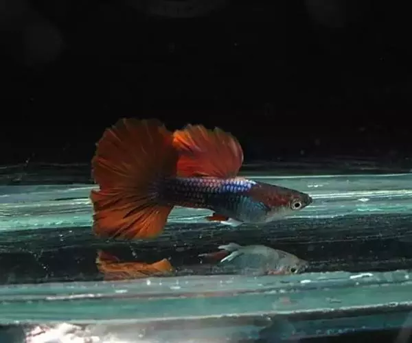 孔雀花鳉(Poecilia reticulata) ,俗名孔雀鱼,也称为凤尾鱼、彩虹花鳉、虹鳉、古比鱼等,是花鳉科花鳉属的一种热带鱼,雌雄鱼的体型和色彩差别较大,成年雄鱼身体瘦小,体长3-4厘米,体色绚烂多彩、体型优美;成年雌鱼体长5厘米左右,其尾柄及尾鳍占全身的1/3以上,各鳍均较雄鱼的短。较雄鱼体色逊色得多。