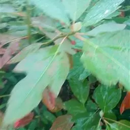 叶互生,长圆形或长圆状披针形,长5.5-12厘米,宽1.8-3.2厘米,先端锐尖或渐尖,基部楔形,边缘细波状,革质,上面暗绿色,下面稍淡,两面无毛,羽状脉,中脉及侧脉两面凸起,侧脉每边10-12条,末端近叶缘处弧形连结,细脉网结,两面多少明显,呈蜂窠状;叶柄长0.7-1厘米,鲜时紫红色,略被微柔毛或近无毛,腹面具槽。