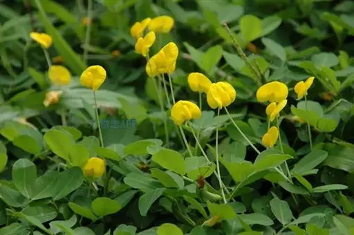 蔓花生(Arachis duranensis),蝶形花科蔓花生属多年生宿根草本植物,原产于亚洲热带及南美洲,复叶互生,小叶两对呈倒卵形。茎为蔓性,株高10—15厘米左右,匍匐生长。花为腋生,蝶形,金黄色,花期春季至秋季。