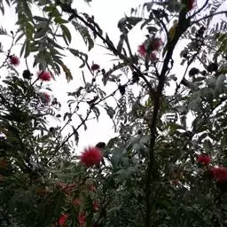 朱缨花,豆科朱缨花属的多年生木本植物,枝条扩展,小枝褐色;叶片呈卵状披针形;头状花序腋生,…