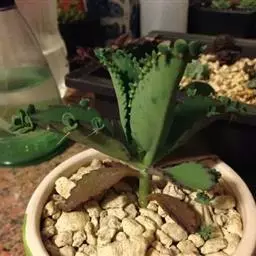 棒叶落地生根是景天科、落地生根属植物。茎直立、粉褐色。叶圆棒形,上表面有沟、粉色,有红褐斑。…