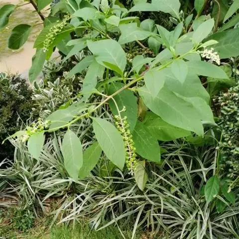 垂序商陆,商陆科商陆属的多年生草本植物。株可高达2米;叶椭圆状卵形或卵状披针形,先端尖,…