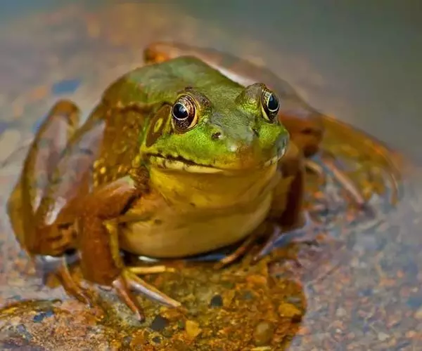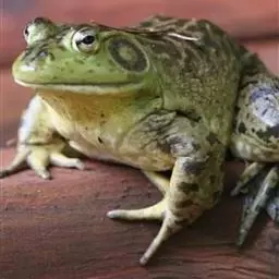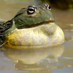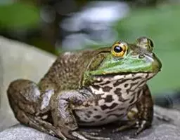 牛蛙 原产于北美,因其鸣叫声宏亮酷似牛叫而得名。1959年牛蛙从古巴引入我国,九十年代左右开始在我国被大范围推广养殖。近年来,牛蛙已成为我国水产养殖重要的名特水产品之一。