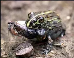 养成按时摄食的习惯。可在投饵前敲响器具,或将室内电灯打开,作为给饵信号,以后形成条件反射,一有信号,牛蛙就集中到浅水区摄食。