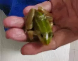 • 绿臭蛙,无尾目蛙科臭蛙属。雄蛙体长78~88mm,雌蛙体长93~131mm。头部扁平,头长略大于头宽,…