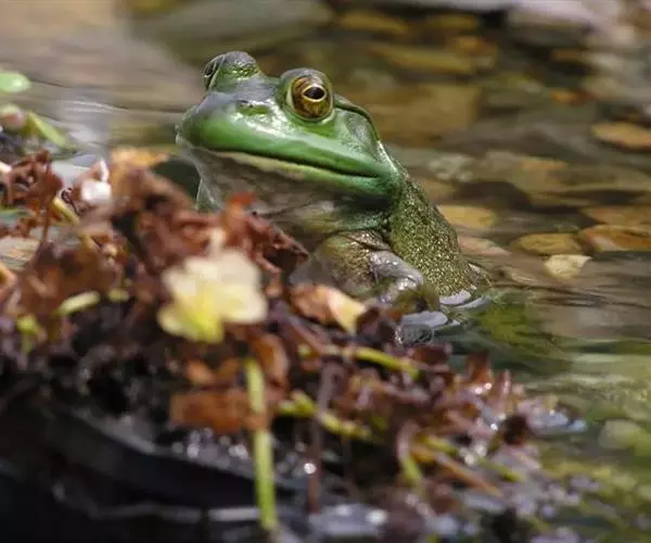 蛙池要保持水深1~1.2m,不要让水面结冰,池底要留有淤泥6~9cm 厚,以便牛蛙潜水蛰伏淤泥越冬。当遇到连续寒冷结冰的天气,要进行水面破冰,以防水体冻结引起牛蛙体液和血液凝固