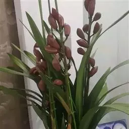 建兰素花,绿白色,清香,一枝开花5至12朵。叶色钢青,细而挺拔,有铮铮铁骨之相,所以叫铁骨素。在日…